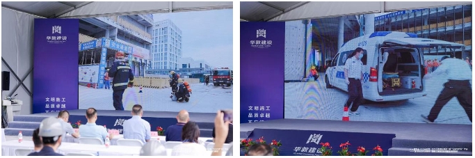 会上,首先进行了施工现场消防应急演练、防汛防台应急演练以及高处坠落事故处置应急演练。高坠事故模拟了作业人员从临边坠落后应急处置。消防应急演练模拟了动火作业引起的火灾险情,现场进行了人员疏散、现场警戒、联系消防支队等程序。防汛防台应急演练模拟暴雨台风登陆,现场进行了人员疏散转移、脚手架加固、地下室防汛排涝等演练科目。通过此次应急演练,进一步加强了人员的危险隐患意识以及处理突发险情的应变能力,真正做到“人人讲安全、个个会应急”的安全月主题。