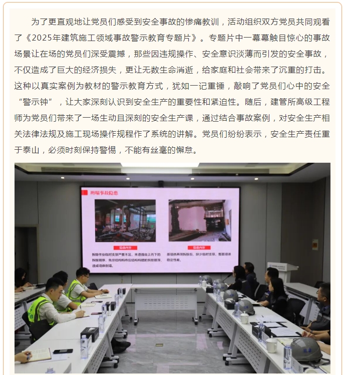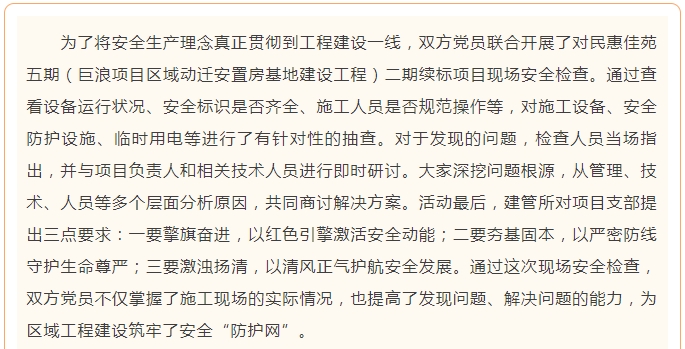 学习教育守底线 安全生产筑防线——区建管所党支部联合红色工地党支部开展安全生产月党建联建活动
